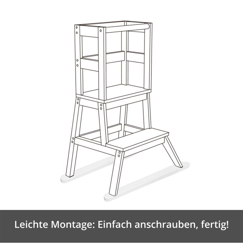 Bei einem Küchenturm für Kinder: Nur unter Aufsicht von Erwachsenen benutzen. Durch die Länge von 56 cm & einer Breite von 4,5 cm erhält der Learning Tower zusätzliche Standfestigkeit & das Gewicht des Kindes wird besser verteilt, sodass der Kindertritt standfester ist.