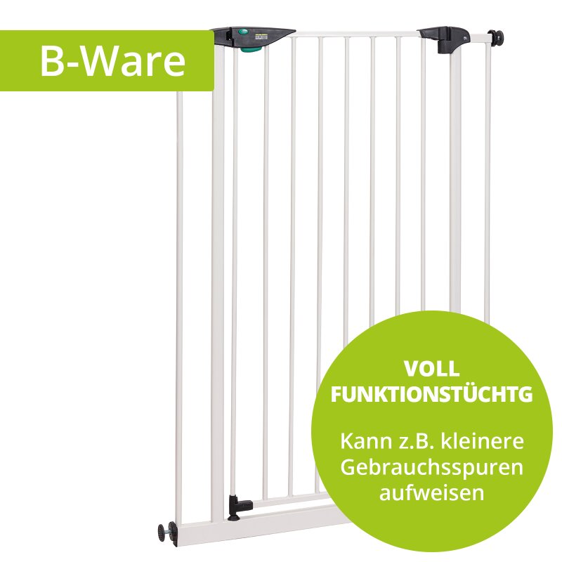 Das Schutzgitter Mira aus Metall für Kinder stammt aus einer Kunden-Rücksendung und ist geprüft. Funktionell einwandfrei - Es können Lackkratzer vorhanden sein.