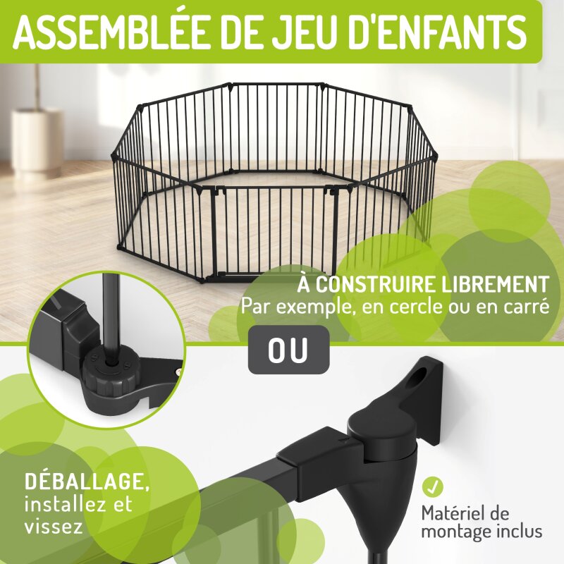 Das Absperrgitter wird vormontiert geliefert, lediglich die Wandhalterung muss noch angebracht werden, sofern man das möchte. Ansonsten lässt sich das Gitter auch praktisch als Kreis oder Rechteck montieren. Bei Bedarf lassen sich einzelne Elemente mit wenig Aufwand entfernen oder hinzufügen.
