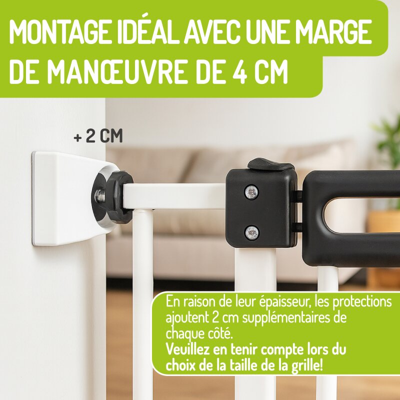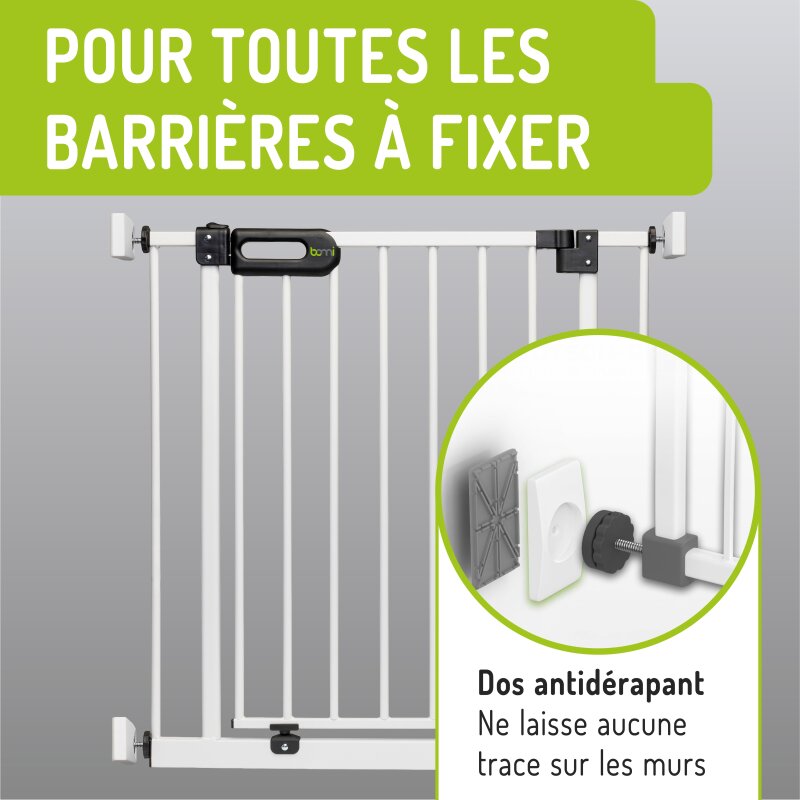 Les coussinets muraux carrés de BOMI sont la solution idéale pour fixer une barrière de sécurité, une barrière d’escalier ou une barrière de porte de manière stable – sans aucun outil. Ces pads robustes protègent efficacement vos murs contre les marques de pression, tout en garantissant un maintien sûr et antidérapant du portillon.