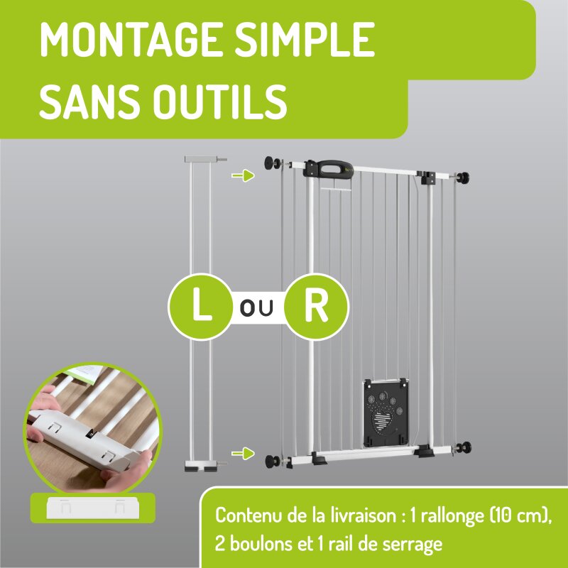 Extension extra-haute 107 cm pour barrières Merle & Mira FlatStep – Rallonge en métal avec chatière