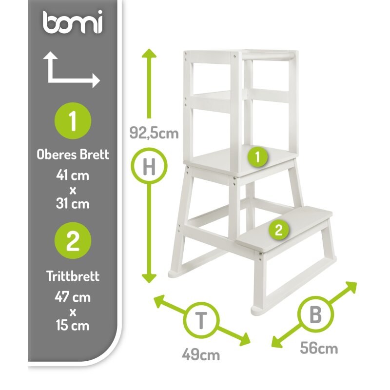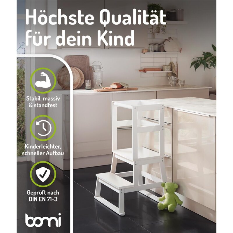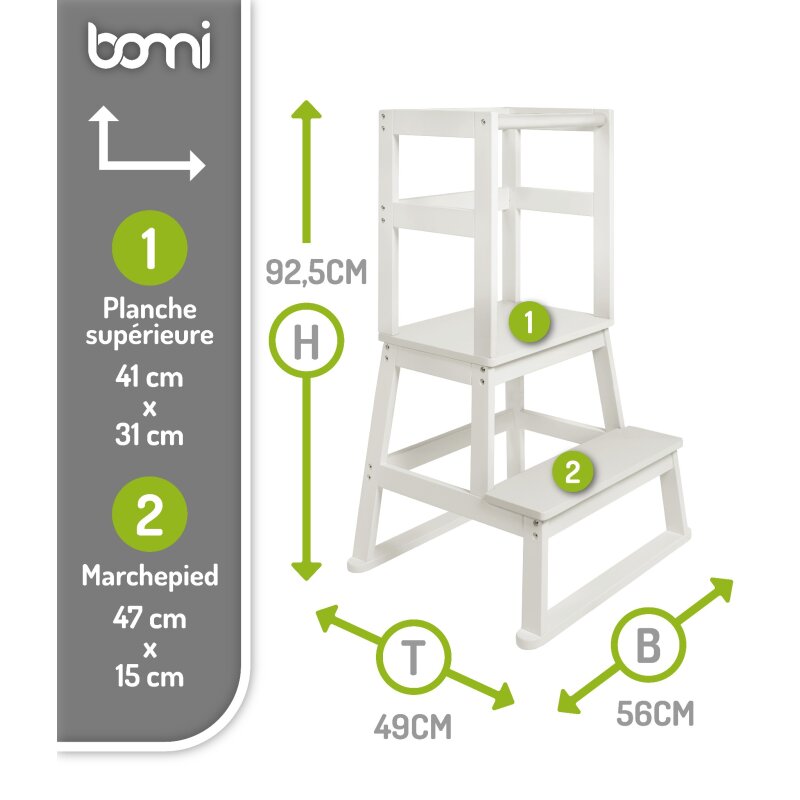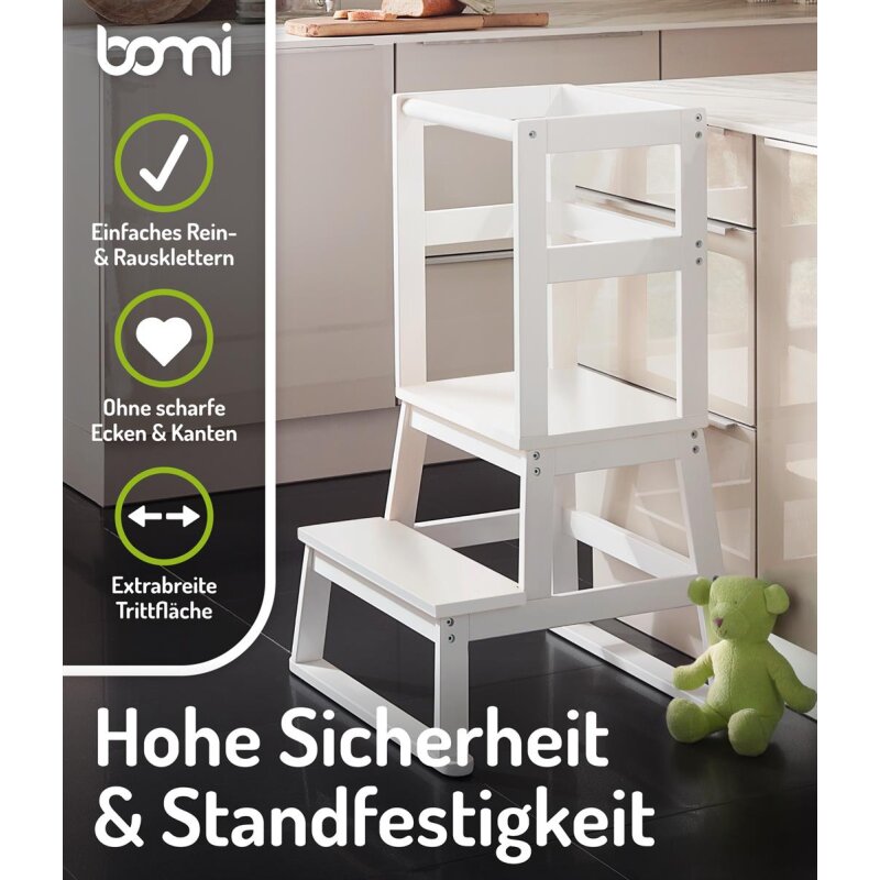 La marque BOMI est spécialisée dans la sécurité des enfants et des animaux : des barrières de protection aux meubles d’enfants en bois massif, tous les produits respectent les plus hauts standards de qualité et de sécurité. Avec le Lernturm Swubi, vous offrez à votre enfant un compagnon durable et fiable.